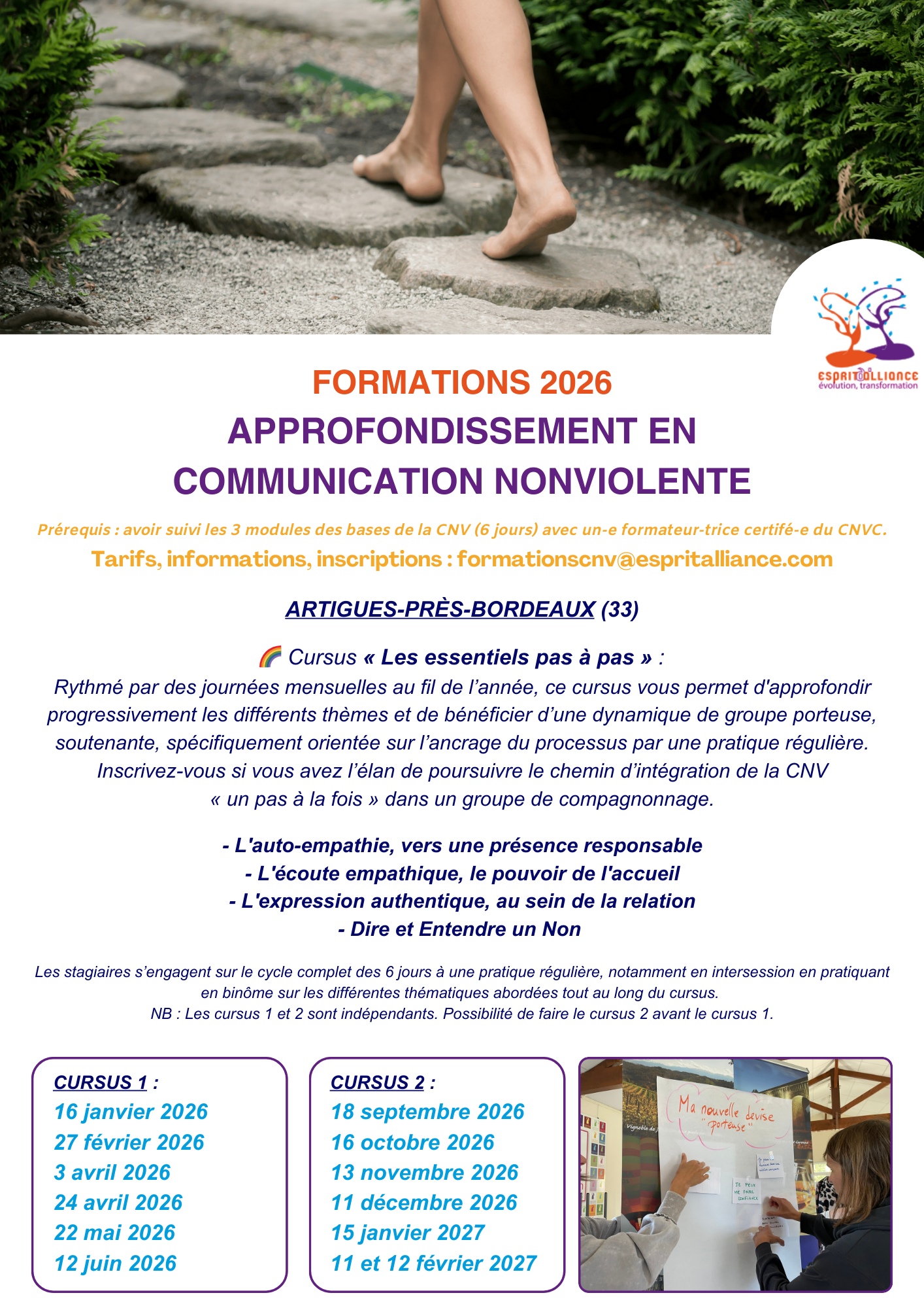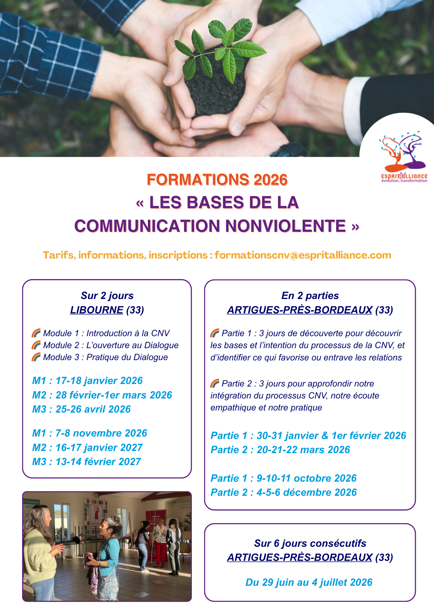 Dates des prochaines formations ESPRIT D’ALLIANCE en 2026